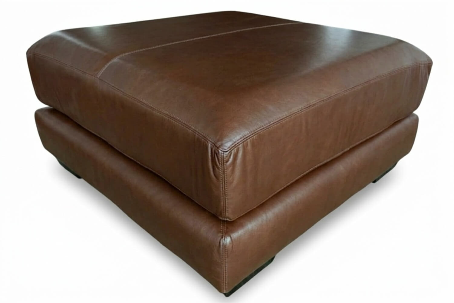 Discover the comfort and style of genuine leather ottomans at Furniture Warehouse. Whether you’re looking for a classic pouf, a practical storage ottoman, or a luxurious footstool to complement your lounge suite, our collection offers versatile designs in rich shades of tan, exotic brown, warm vintage cigar and nguni hides.