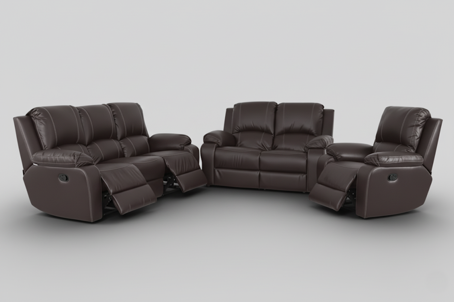 Our Premier Recliner set 3 action leather range is our most versatile range. Multiple Configurations are available to suite any size room. At Furniture Warehouse we are all about options and Local quality furniture.