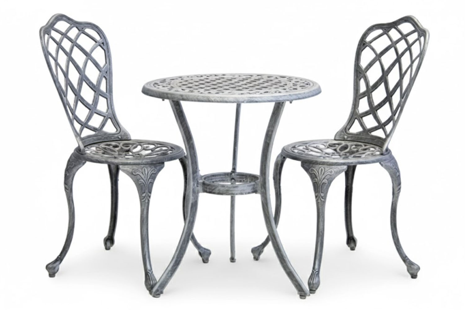 The Aluminium Coral 2 seater Dining set 600 round Silver on Black can be left outside all year round. Cast aluminium is extremely comfortable, stylish and of course practical.