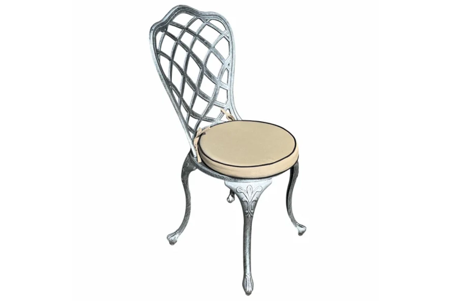 The Aluminium Coral Dining Chair Silver with Beige Cushion can be left outside all year round. Cast aluminium is extremely comfortable, stylish and of course practical.