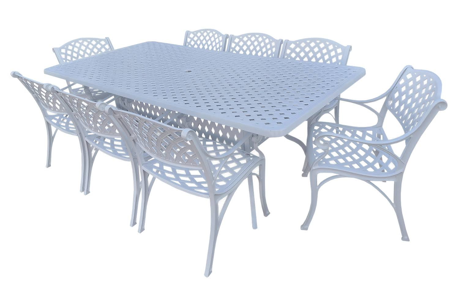 The Aluminium Cottage 8 Seater White Dining Set can be left outside all year round. Cast aluminium is extremely comfortable, stylish and of course practical.