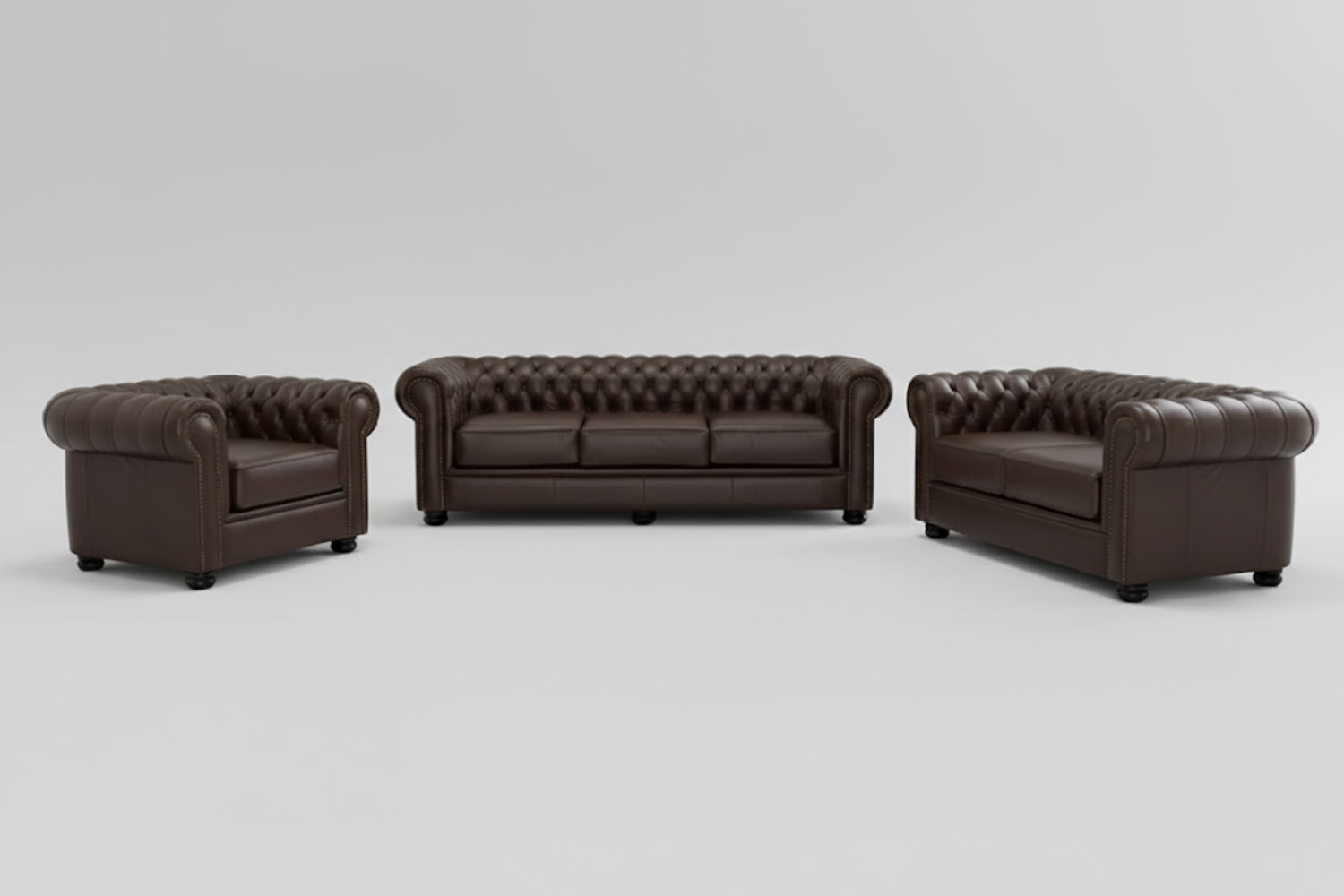 The Chesfield 3 piece couch set leather is a Classic, timeless and striking design. Should you want something to make a huge impact in a room this will be your couch of choice.
