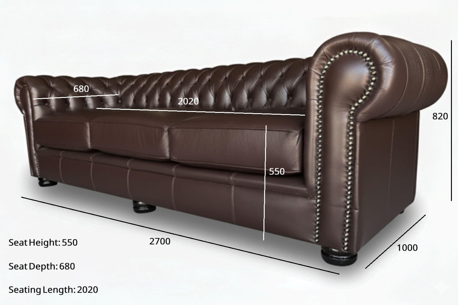 The Chesterfield Comfort 3 piece couch set leather is a Classic, timeless and striking design. Should you want something to make a huge impact in a room this will be your couch of choice.