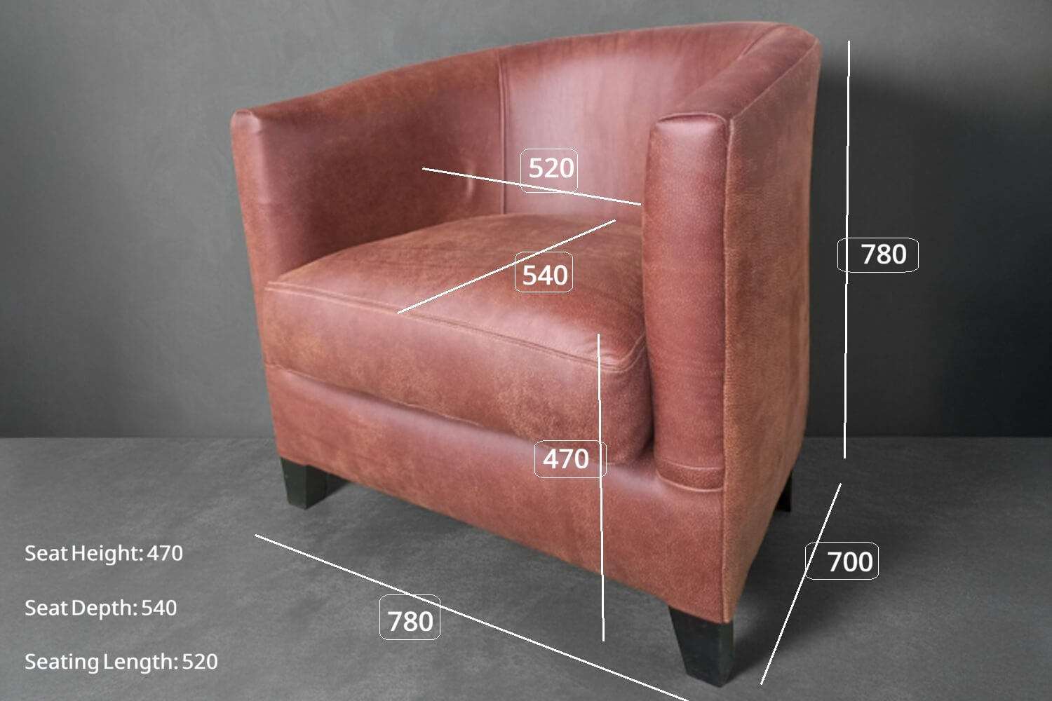 Introducing our Classica Genuine Leather Tub Chair (Exotic Brandy), a timeless piece that combines elegance and comfort.
