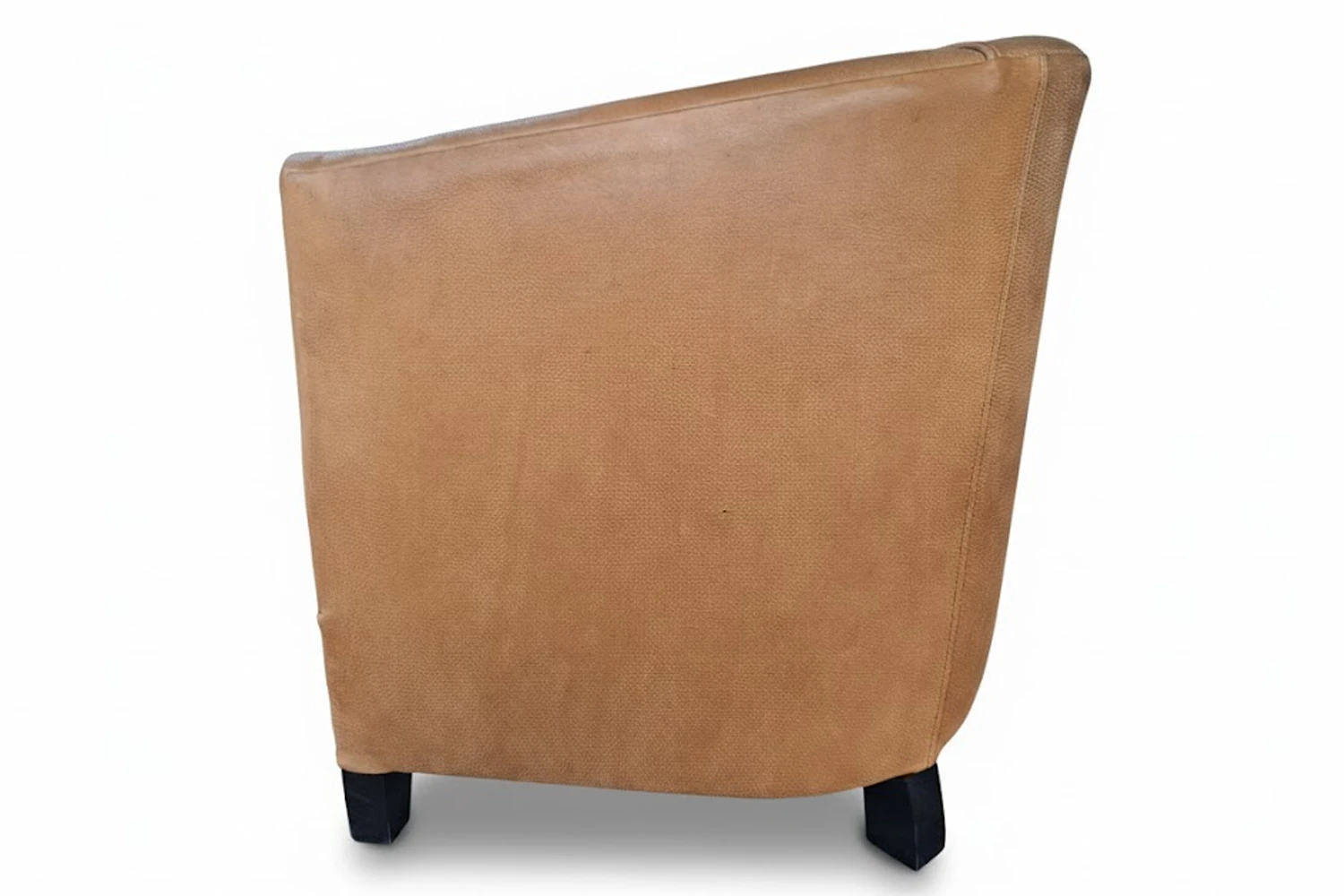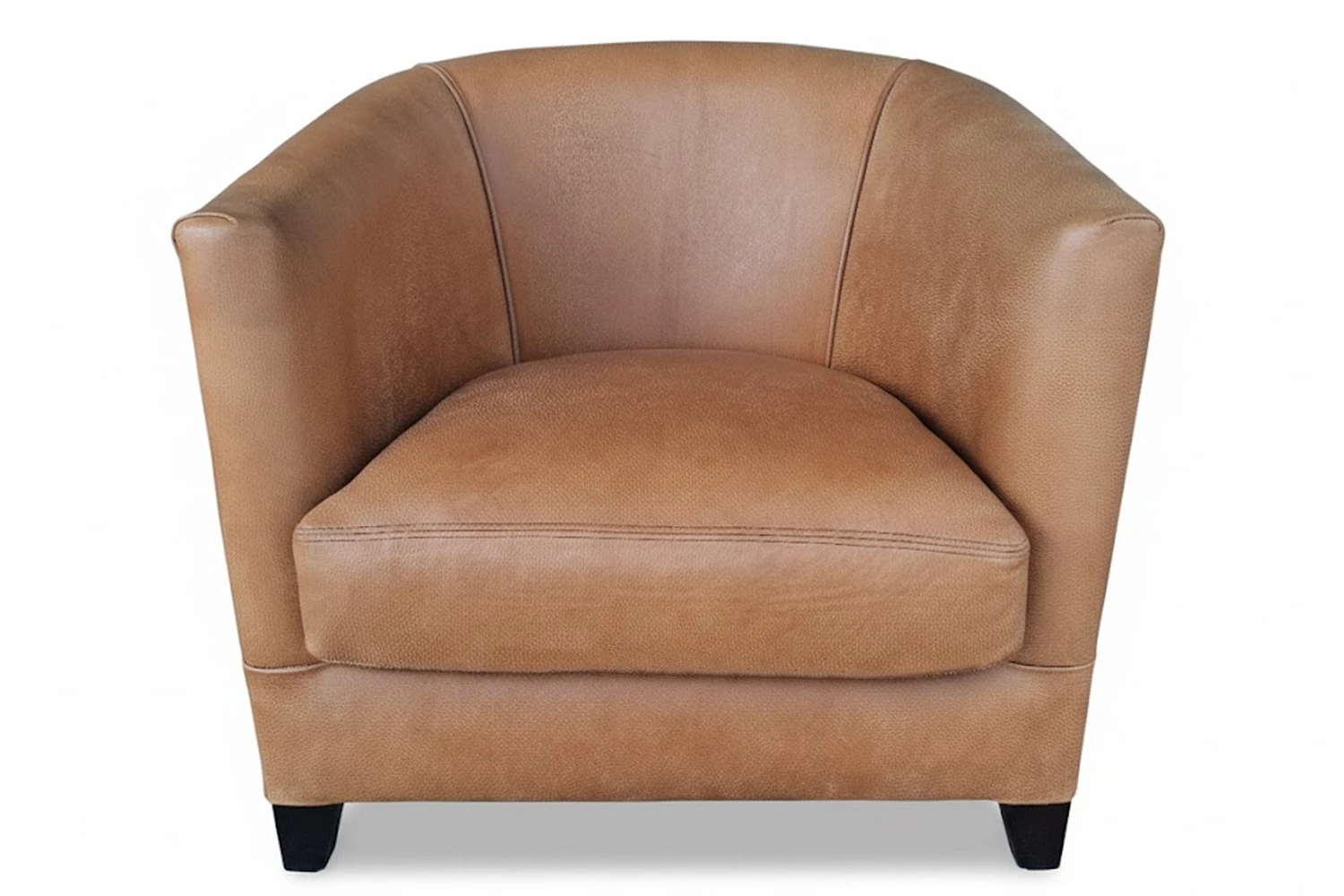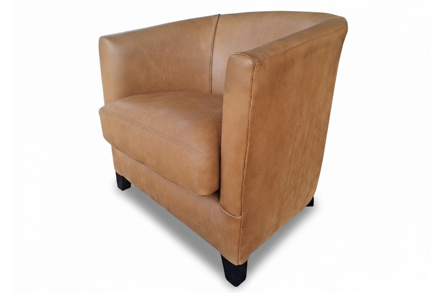Introducing our Classica Tub Chair – Genuine Full Leather Tan, a timeless piece that combines elegance and comfort.