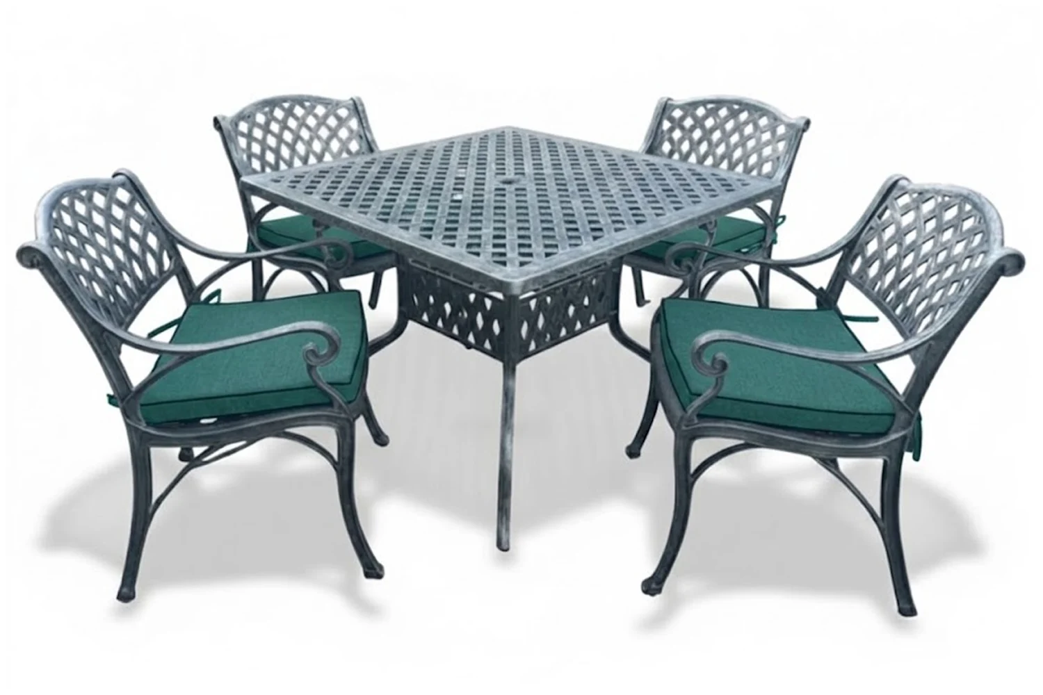 This Cottage Aluminium Dining Chair (Silver, Green Cushion) can be left outside all year round. Cast aluminium is extremely comfortable, stylish and of course practical