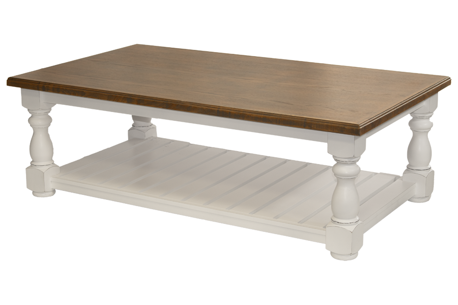 The Farmhouse Coffee Table 1400 has beautifully turned legs exuding that French farmhouse look.