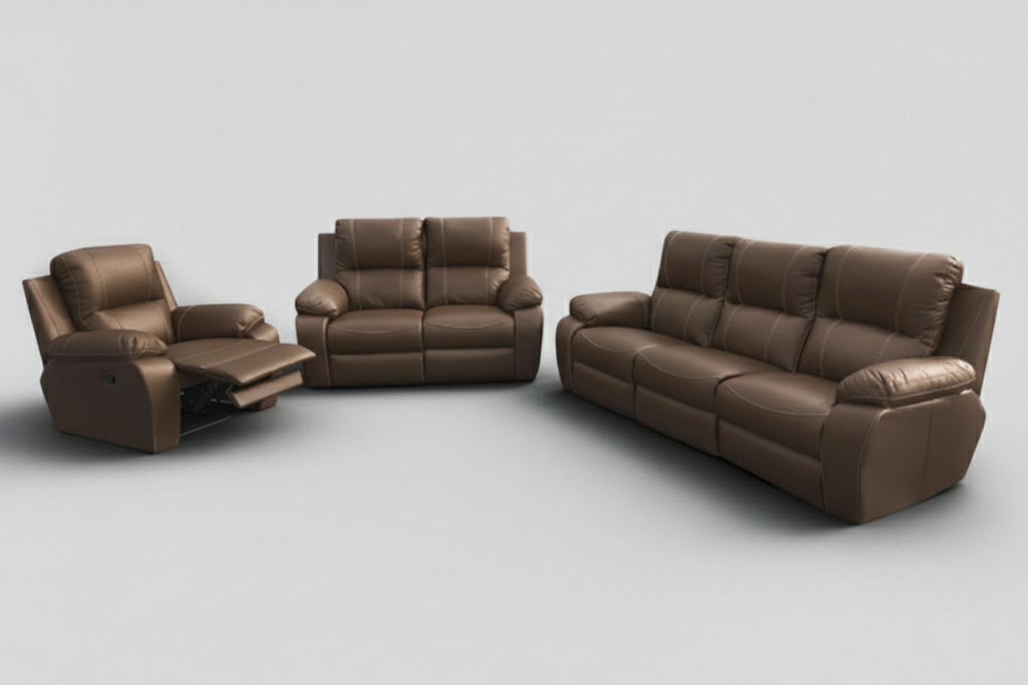 Genuine Full Leather 3 Piece 1 Action Set (Premier 1 Seater 1 Action, 2 Seater And 3 Seater) Brown