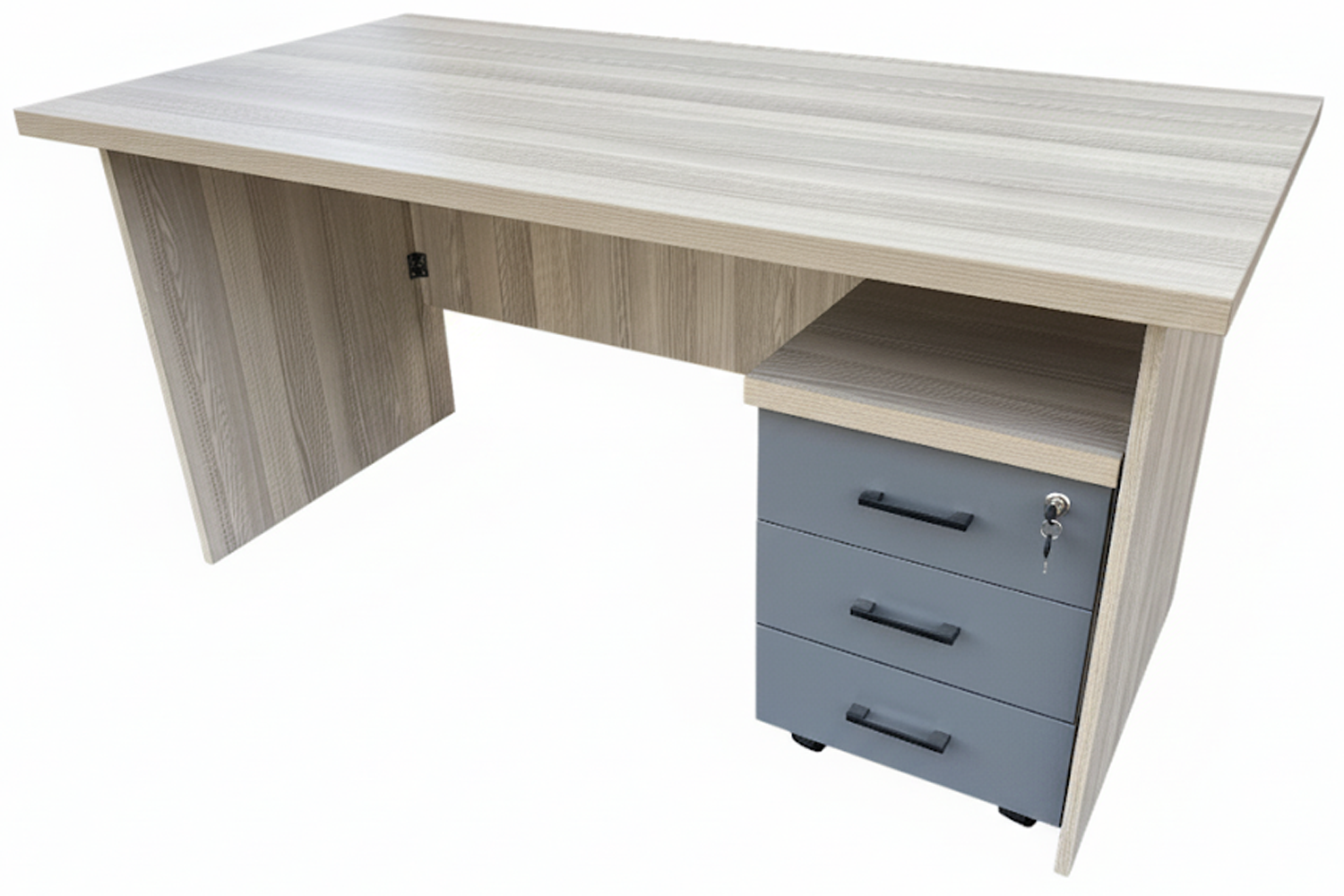 Strong, durable and easily maintained. Our IQ Full Desk 1500 (Frame plus Mobile Pedestal) – Oak is locally manufactured using only the highest quality Melamine.