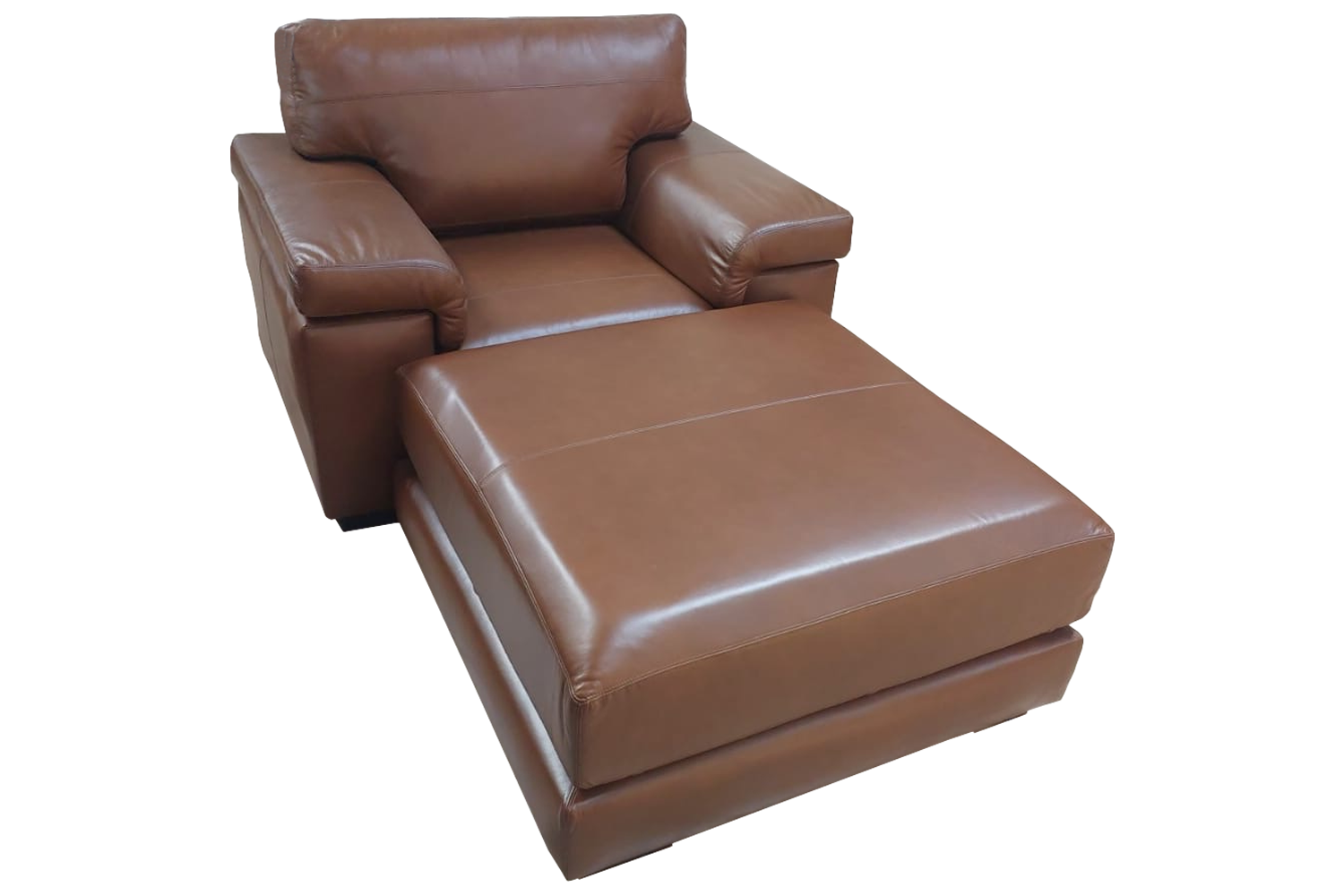 Our Living Armchair with Ottoman Genuine Exotic leather Chestnut is unique in that its compact design is perfect for any home.
