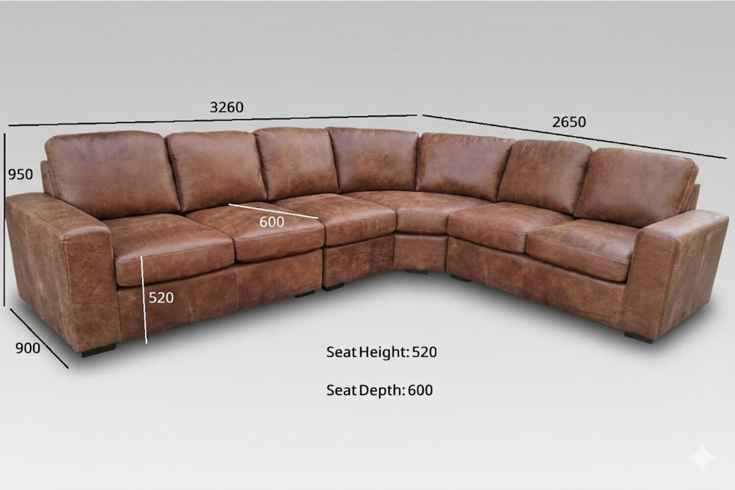 Our Mode 6 Seater Corner Couch in Exotic Buffed Brandy is unique in design.