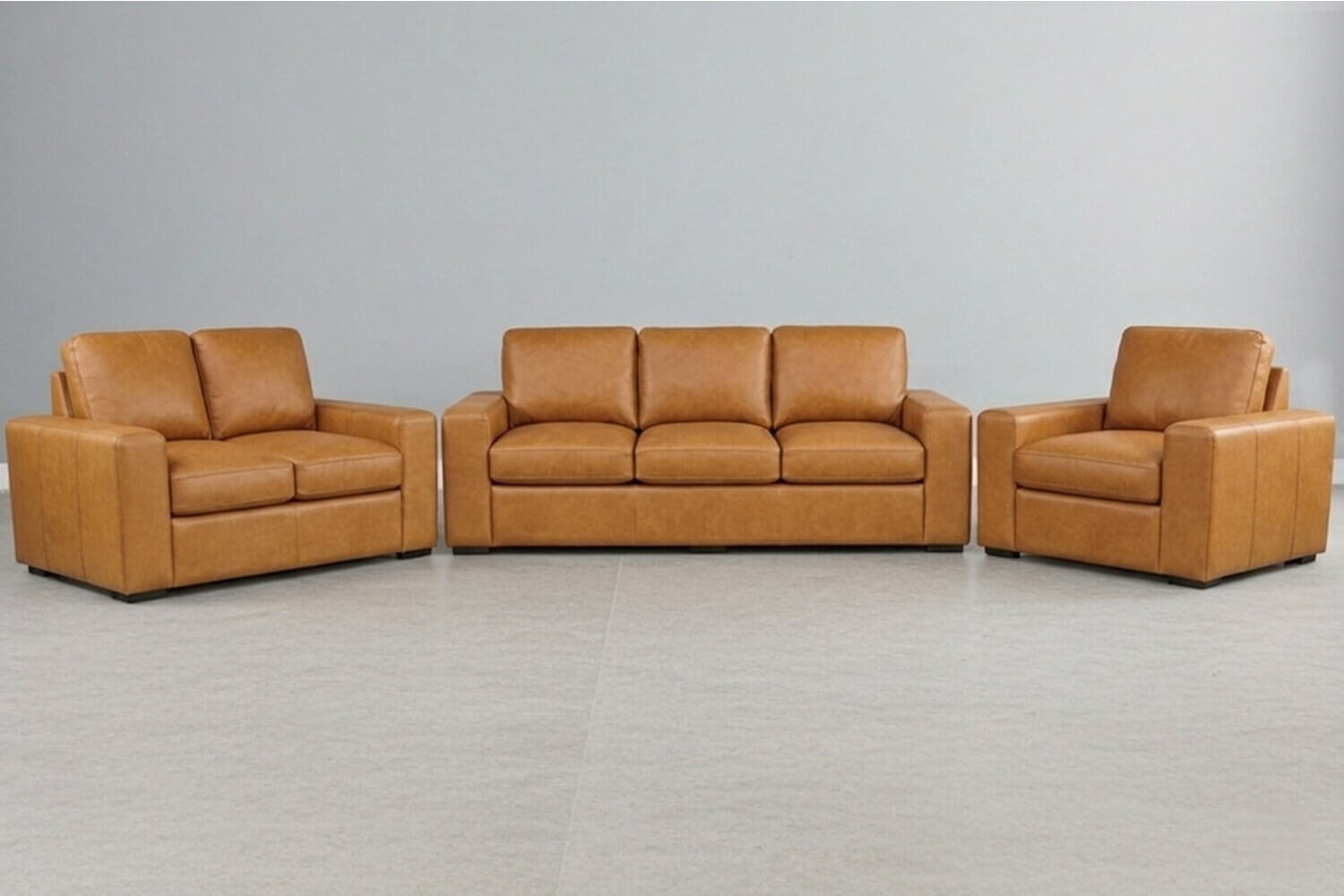 Our Mode 3 Piece Couch Set Exotic Tan Leather is unique in that its compact design is perfect for smaller apartments.