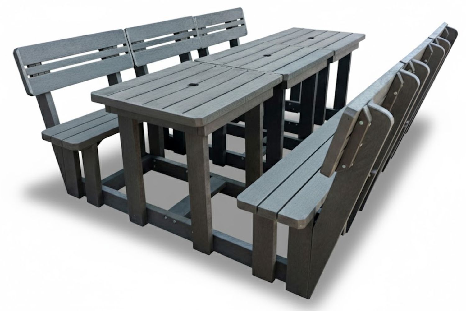 Picnic Table 6 Seater XXL (3X2str) Plus Backs (RECYCLED PLASTIC)