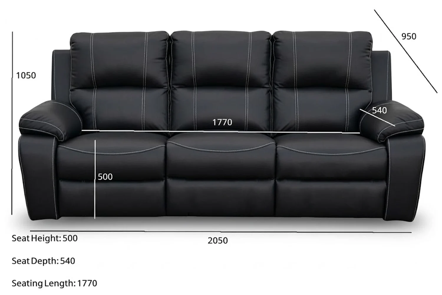 Our Premier Genuine Leather Sofa 3-Seater (Static, Black), is a luxurious addition to any living space. This dark colored couch boasts a sleek and sophisticated design, perfect for those seeking both comfort and style.