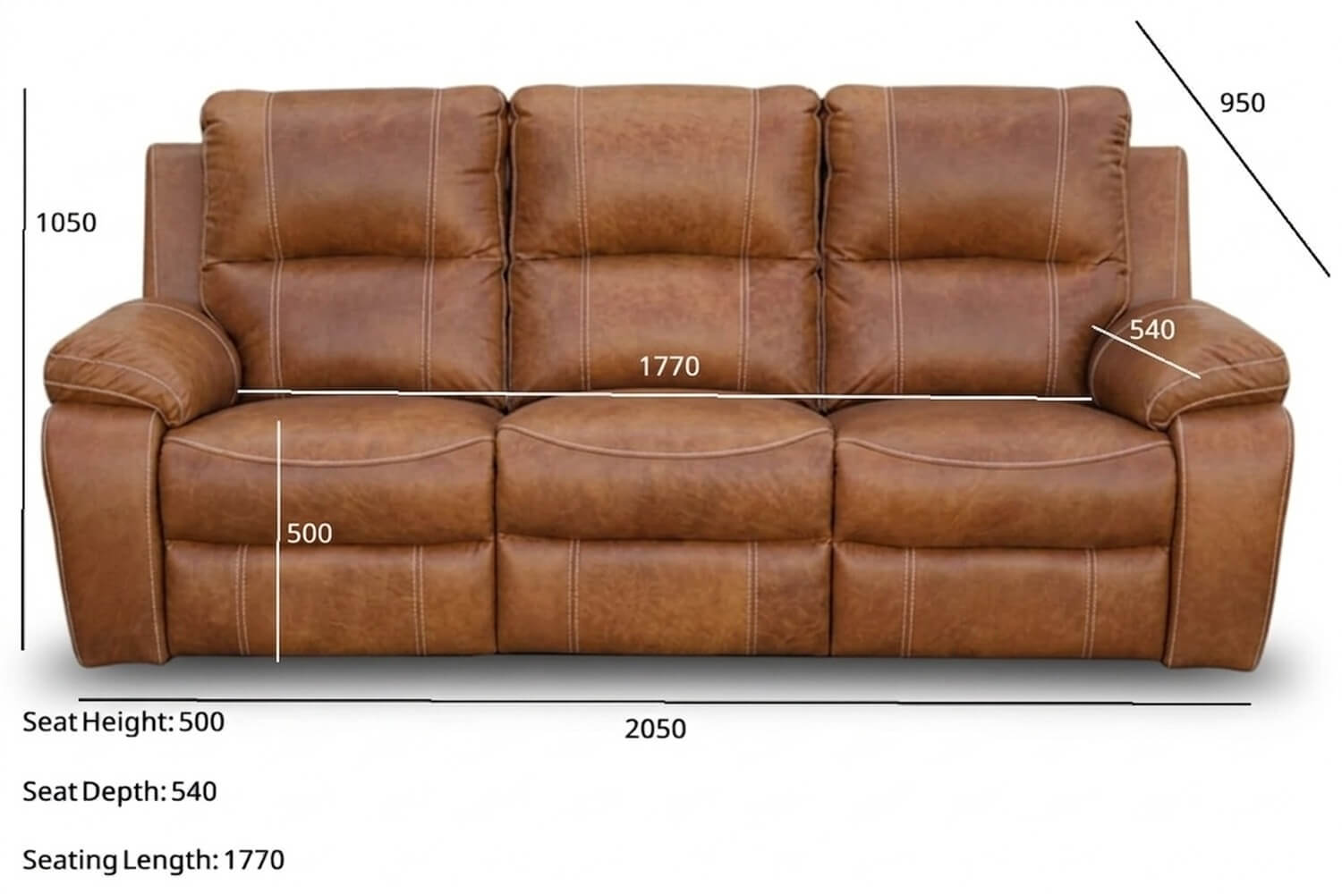 Premier Genuine Leather Sofa 3-Seater (Static, Vintage Brandy)