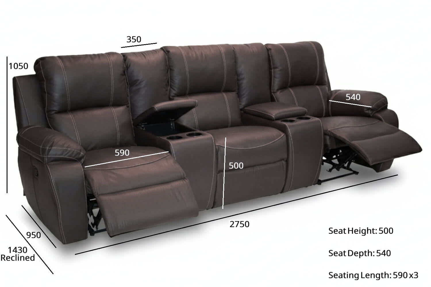 Our Recliner 3 seater 2 action 2 console in leather is our most versatile range. Multiple Configurations are available to suite any size room. At Furniture Warehouse we are all about options and Local quality furniture.