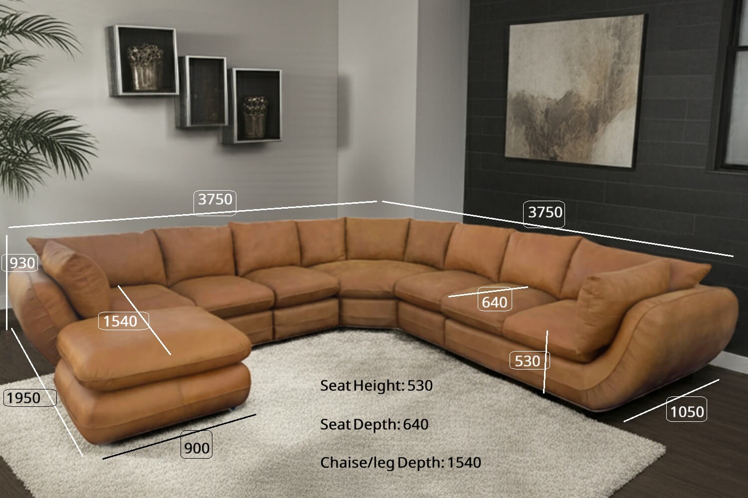 Majestic and stately is exactly the feeling you will have when sitting on our Regale 7 Seater Corner Couch with Ottoman – Exotic Genuine Leather Tan
